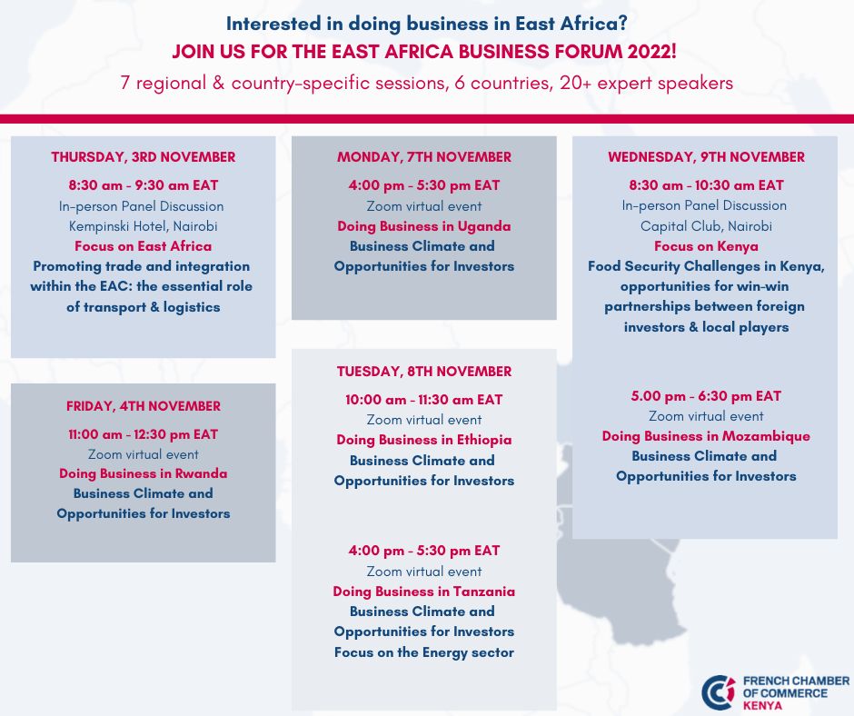 This forum will be the opportunity for investors to get information on business opportunities in East-Africa and hear from the local business communities.
